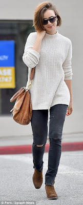 I admire the boho vibe, but I also love when she gets sleek and polished. She has such a striking face and a fantastic silhouette, as seen below. The black leather and red lips are a nice elevation.